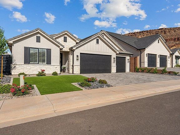 This stunning home, in the Red Mesa Subdivision boasts 9 foot ceilings throughout, creating an open and spacious feel in every room. You'll love the abundance of natural light streaming through the oversized, cased windows, enhanced with elegant plantation shutters and electric blinds on the rear-facing windows for added convenience. The interior features beautiful wood flooring, full suite of GE Cafe kitchen appliances, and the refrigerator is included. A water softener and epoxied garage floor. Step outside to unwind in the private hot tub, surrounded by a fully landscaped yard complete with block walls, iron gates, artificial turf, and additional mature plants for added charm. Low maintenance paver driveway and patio.