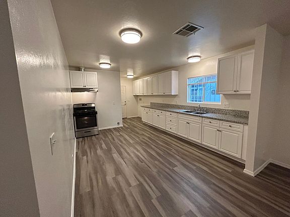 Recently renovated home close to the 58 freeway and downtown Bakersfield. Hardwood floors and granite countertops make this home feel very cozy while the 4 bedroom layout makes it easy to spread out with 2 bathrooms to keep everyone happy. The kitchen is very well laid out with tons of counter and cabinet space. There are hookups for a washer and dryer in the unit. Please note there is no use of the backyard. 2 off street parking spots. Renters pay for water, electricity, and internet. No smoking. No Pets. 1 year lease. No access to backyard.