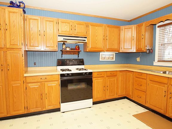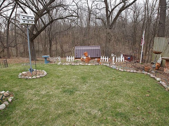 NO NEIGHBORS BEHIND! Property backs up to woods for extra privacy! Home is larger than it looks from the street. Many major updates: furnace & central air, vinyl siding, windows, and roof. Oversized garage (25x19) with plenty of storage & workspace. Finished walk out basement with large Family Room ( 25x15 w/ 1 yr old carpet), office space, rec room, and 2 storage areas. All appliances stay. Fenced front yard. Newer storage shed.
