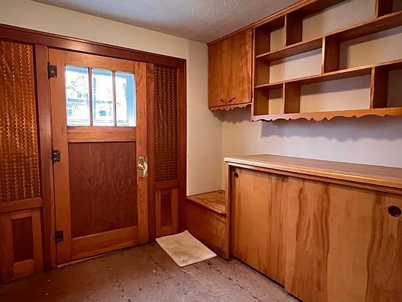 So much potential in this 3 bedroom, 1 bath home - the main floor consists of a large foyer with many built-ins, large living room, dining room with open staircase, spacious eat-in kitchen with lots of cabinets and built-ins, bedroom and full bath. Upstairs there is a nice landing area with closet, two large bedrooms, plus attic storage. The basement is unfinished and has a interior tile drainage system. The home is being sold 'AS-IS'. The heating registers/pipes froze and there was water damage on the main level. Servpro did complete water mitigation immediately with the main floor flooring being removed to ensure complete moisture removal. Stand alone furnace in basement for auxiliary heat, there is no duct work in the home. New shingles in 2018.