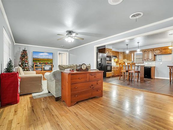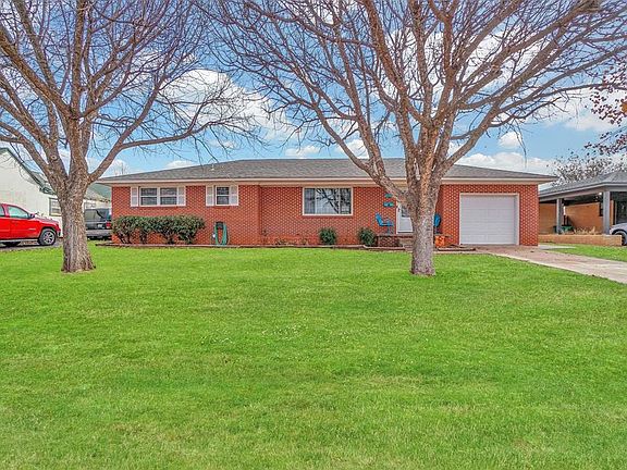 Great location! Nestled on a quiet street with a wonderful view of the sunsets. This immaculate home has an open concept floor plan. The kitchen is very nice with oak cabinets, built in black appliances including a gas stove and a side by side refrigerator and a working island. Hardwood floors in living room and all bedrooms. Tile flooring in kitchen and bathroom. All bedrooms are good size. Main bathroom has been remodeled 2022. This home has been completely rewired and has all new PEX plumbing throughout. The large laundry room is plumbed for a 2nd bathroom. No carpet and no popcorn ceilings. All newer interior and exterior doors. Very large 30'x40' detached garage/workshop. The workshop includes a refrigerator & an 18' garage door with lift. The garage/workshop has new wiring 2018 with outlets every 6'. Extra parking beside the garage/workshop for an RV and also includes a 220 electrical outlet. Whole house water softener. Extra insulation in attic & walls. Interior & exterior paint 2021. Double pane windows installed in 2008. Roof is approx. 5 years old. This house has so much to offer & too many updates to include in the listing. Just a short drive from AAFB, Elk City, Altus and Lawton. Schedule a showing now!