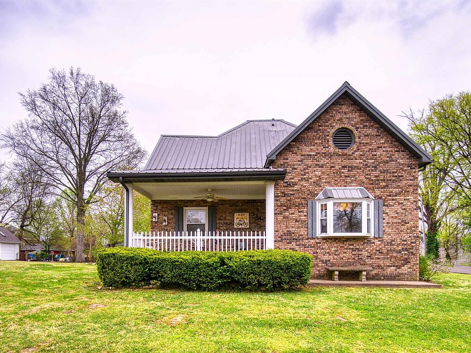 Nestled on a spacious lot, this charming brick home boasts durability and timeless appeal. Its sturdy construction exudes a sense of permanence, while the metal roof offers both durability and style. Step inside to discover a warm and inviting interior, where three cozy bedrooms await, providing ample space for rest and relaxation. Offering a convenient main bathroom, along with a half-bath, ensures comfort and convenience for residents and guests alike. Outside, a 30 x 28 detached garage stands ready to accommodate your vehicles and storage needs, complete with a single stall for easy access. Adjacent to the garage, a 28 x 14 carport offers additional covered parking. For those in need of extra storage space, two storage sheds provide plenty of room for tools, equipment, and outdoor gear. Meanwhile, a large lot adds versatility and potential for expansion or outdoor recreation. Don't miss the opportunity to make it your own!