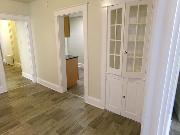 Credentials: 2 yr work history Pets are allowed, with a pet security deposit and extra monthly fee. First floor, 2-bedroom unit that has been completely remodeled throughout. Large living room/dining combination, new kitchen cabinets, gas appliances, granite countertops, new flooring, new combination tub/shower. The home is heated by natural gas/hot water radiators. Wall window air conditioning. Large front porch and there is 2 off street parking places. No laundry, wall window a/c is allowed. Smoking is allowed away from the building. Owner pays: water,sewer,trash,lawn and shrubbery care. Teant pays: Gas heat, electric, cooking gas, cable, snow and ice removal.