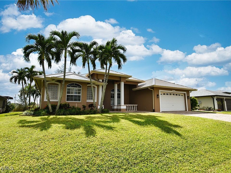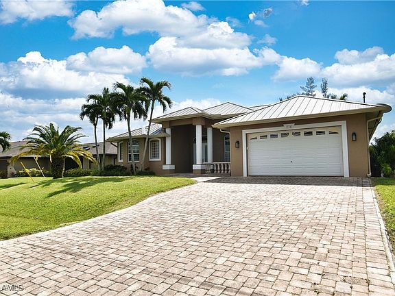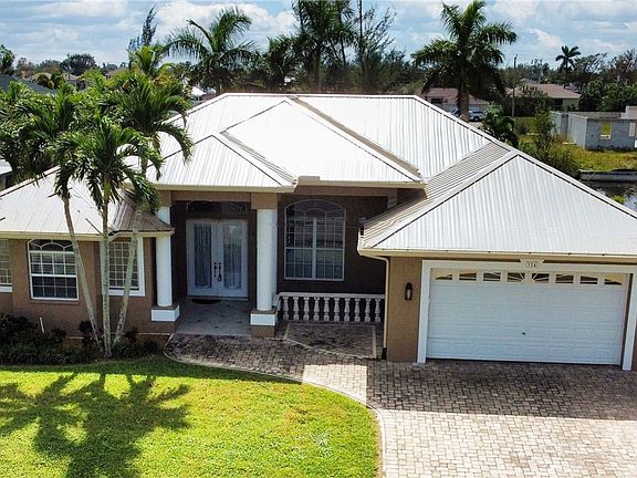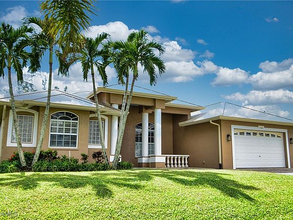 Price Reduced to sell! Welcome to this beautiful fresh water canal pool home in Southwest Cape Coral! As soon as you drive in, you will notice this impressive home with a large paved driveway and front porch. This residence offers 3 bedrooms, 3 full baths, formal living room, family room and there is also a space for your office. Step inside to discover an interior with high ceilings, an inviting open concept, and a thoughtfully designed split floor plan, with 2,339 square feet of living area. This home offers spacious indoor living, boasting the highly sought-after Southern exposure that floods the rooms with natural light. Kitchen features an island with breakfast bar, granite countertops, stainless steel appliances and plenty of cabinetry space. Living room/dining room/kitchen and bathrooms with tile floors, all bedrooms with engineered wood floors, every bedroom has its own full bathroom. Laundry room with washer, dryer and laundry tub. Sliding doors in the living room, family room and master bedroom gives you access to relax and enjoy your sparkling swimming pool with a waterfall. The property is being offered partially furnished. Brand new metal roof and pool cage enclosure in 2024. Automatic sprinkler system. Oversized garage, extra 3 feet deep.