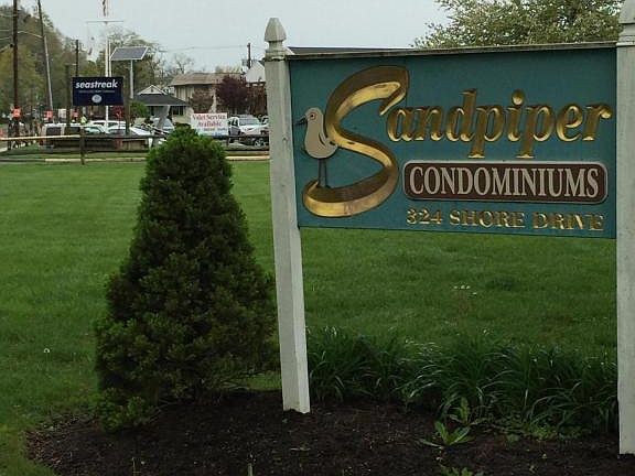 Sunny and bright second floor end unit Sandpiper condominium features 2 large bedrooms and 2 full bathrooms waiting for your personal touches. The open living/dining room area has sliding glass doors opening to a private balcony that enjoys a waterview and privacy of a large, green foliage shade tree. Unit has large closets with shelves for built in organization and walk-in laundry area. Walking distance to beach, shops and restaurants. Next door to Seastreak Ferry with easy access to NYC Express bus. This property is truly a commuter's dream!