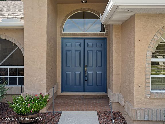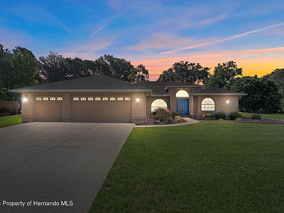 Welcome to this newly remodeled home in East Linden Estates. Original owner, home has been well maintained, and the home shows pride of ownership. The home has three bedrooms, two bathrooms, three car garage, is on a half acre lot with mature landscaping , and a sprawling backyard perfect for outdoor living. Walk in through the double doors into the living room, and dining room. and you notice all the luxury vinyl plank flooring. The vinyl plank flooring is throughout the home, The kitchen displays 42'' white shaker cabinets, granite countertops, double ovens, stainless steel appliances, a built in wine fridge, and an eat in kitchen. In the master suite that was updated in 2022 ,you will find two closets, granite countertops, dual sinks, a soaking tub ,and a separate shower, There is a spacious family room off the eat-in kitchen that has a wood burning fireplace for those cool winter nights. Down the hallway are the two bedrooms that share the second bathroom. Additional features include a new washer and dryer, central vacuum system, and a central monitoring alarm system. Step outside and find a screened-in patio featuring a sport swimming pool perfect for relaxing on a float or playing volleyball. There is a removable child barrier for the pool if needed. The motor for the pool filter is new in 2025.The three car garage includes expanded attic space that provides plenty of parking and storage space. The property has a sprinkler system and well for irrigation. Low HOA. No CDD. There was a wind mitigation report done in 2025. East Linden Estates has tennis courts, and nature trail for residents to enjoy. Located close to the entrance to the Suncoast Parkway for quick and easy access to Tampa! Forty minutes to Tampa International Airport! Ten minutes to Tampa General Spring Hill Hospital.