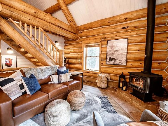 Escape to the mountains to this stunning hand peeled Swedish cope log cabin. Minutes from Fairplay, and a short walk from Beaver Creek Trailhead in Pike National Forest, this cabin has been fully remodeled and has a strong vacation rental history. Property is located at the end of a county maintained road on a 1.1 acre lot that has privacy, trees, no HOA/CCRs, wired for generator, large electrified shed for storage, and a wood stove heated sauna. Step onto the covered deck to relax on the porch swing and enjoy the peace and quiet. Once inside, the open-concept main level greets you with expansive vaulted ceilings, beautifully remodeled kitchen, living room with wood burning fireplace, and dining room. Main level bedroom is cozy and next to a fully remodeled bathroom complete with quartz countertop, modern lighting, large shower that has marble-look tile and glass siding door. Step upstairs into the multi-functional loft that can be a bedroom or cozy space to relax and retreat. Downstairs, the walk out basement has a family room that is perfect for movie nights, a large bedroom that can sleep up to 4 people, a spacious walk-in closet for storage, remodeled bathroom, and laundry. Steps away outside is the wood burning sauna that is the perfect ending to a day in the snow. Back of the property is often a grazing spot for local wildlife- moose, deer, elk, bear and other animals are frequently seen on site! Do not misss an opportunity to own a beautiful slice of Colorado heaven!