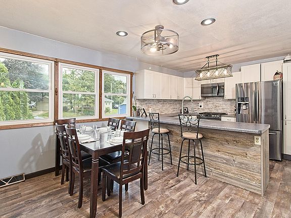 Wow! Don't miss out on this redone ranch! This 3 bedroom, 2.1 bath home is sure to impress with a new kitchen! This home has newer flooring throughout and has a perfect layout for entertaining. Master bedroom has full bath. Main level also has 2 additional bedrooms and updated full guest bath. New windows throughout!! Finished walkout basement with laundry and redone half bath. 2 car tuck-under garage. All of this on a large corner lot which is partially fenced and has a storage shed. Just down the street from the Burlington Pool!!!!