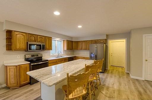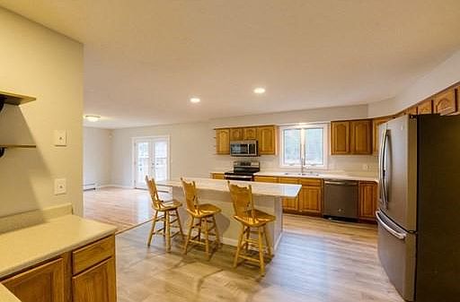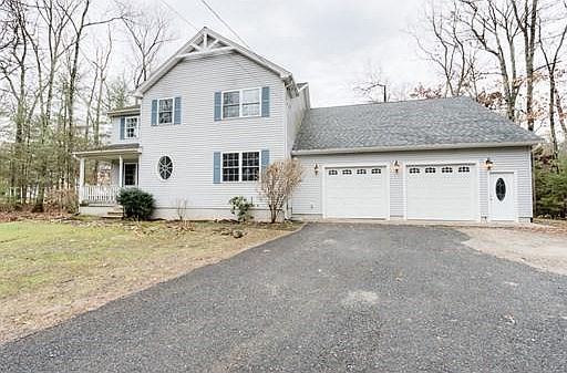 Located on a country road in Belchertown this Enhanced Colonial has everything you might desire! 4+BRs, 2.5Baths, Open Floor Plan, over 3acres of land, AND the 2car garage built in 2015 (34x32) which has a HUGE storage loft AND a spacious heated shop area in the back. This home shines w/new paint, refinished hardwoods AND more! Fully Applianced Kitchen w/BRAND NEW GRANITE island, corner coffee station/nook, some new flooring and a full pantry storage(or mudroom). Pellet Stove(2yo) warms the LR, gleaming HWD floors and an atrium door that leads out to the deck. DR can be a den or 1st fl BR if needed! Convenient 1st floor laundry and 1/2bth are right off of the kitchen. 2nd Floor is newly carpeted w/4BRs and has a MBR+Mbth w/new vanity, walk-in closet + private sitting/dressing room w glass doors; another full bath is located down the hall. Finished private room in basement could be 5th BR. Seller states that the basement is wired for kitchenette/heat/framed for bath for your future plan