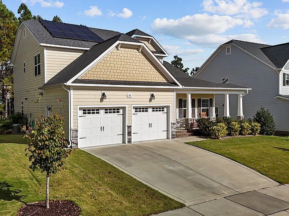 Welcome to this stunning home, built in 2020, offering modern amenities and luxurious features. The open floor plan seamlessly connects the living spaces, perfect for entertaining. The first-floor master suite boasts an oversized shower and a walk-in closet. Each bedroom includes its own walk-in closet, and the custom woodwork in the bathrooms and bedrooms adds a touch of elegance. Enjoy sustainable living with solar panels and outdoor relaxation by the firepit, surrounded by a tree-lined, fenced yard. The screened-in porch provides a comfortable space to enjoy the outdoors, and there's ample unfinished storage space for all your needs. This home is a perfect blend of modern convenience and timeless charm. HOA includes pool, community center, playground, and walking trails. Just minutes away from downtown Knightdale parks, shops and library. Don't miss the opportunity to make it yours!