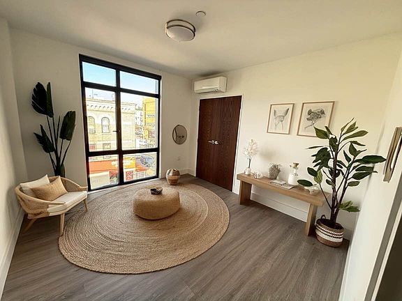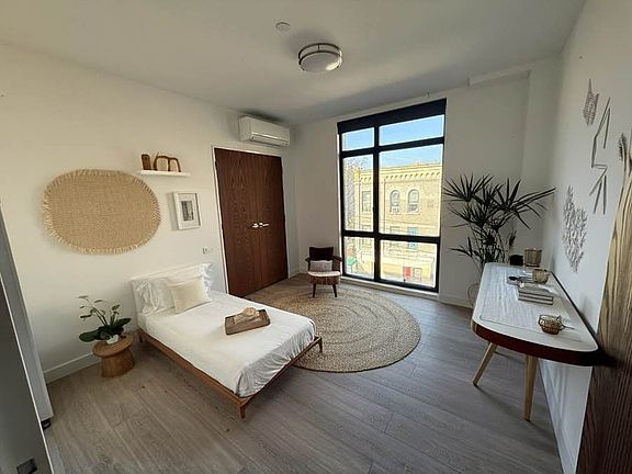 2 equal size bedrooms Living room has floor to ceiling windows Lots of closets Dekalb stop on the L downstairs! Community rooftop Pets are welcome