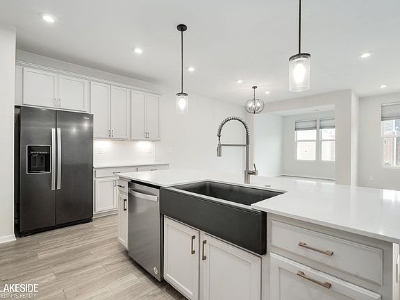 Exceptional modern condo blending sophisticated style with everyday functionality. This open-concept home offers 3 spacious bedrooms and 2.5 bathrooms, ideal for comfortable living and entertaining. The gourmet kitchen features an oversized island and flows seamlessly into the dining and living areas, highlighted by a striking fireplace. Modern finishes, recessed lighting, and stylish fixtures create a warm, inviting atmosphere throughout. The primary suiteincludes a full bath and generous closet space, while all bedrooms offer excellent storage. Second-floor laundry adds convenience. Enjoy nearby walking trails and contemporary living at its finest.