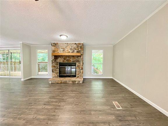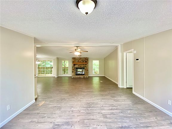 Completely Renovated and de-titled 3 bedrooms, 2 bathroom open floorplan home with almost 2 acres of land! As you step inside this home you are welcomed by the gorgeous laminate flooring that flows throughout this home. The stone fireplace is a great focal point in the spacious living room. The huge kitchen has lots of cabinet and counter space, brush nickel cabinet knobs and pulls, beautiful epoxy exotic pour countertops, stainless steel dishwasher, cooktop stove, wall oven, and a large walk-in pantry. The Owner's suite is on one side of the home, and it has a large walk-in closet, double sinks, separate shower and a garden tub. On the other side of the home are two additional bedrooms with walk-in closets, another full bathroom and the laundry room that also has cabinets. The huge 32x8 covered deck is a great place to relax and enjoy the views of your private backyard. The HVAC unit is new and the home also has architectural shingle roof. There is a whole house stereo system as well. Don't Let This One Get Away!