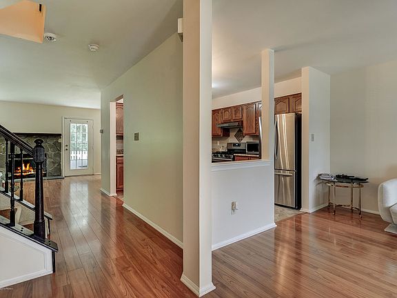 Move right in! Desirable ''Towne Pointe'' Kensington model, 3 BDR, 2.5 BA Townhouse. Beautiful gleaming pergo floors on the 1st floor. Kitchen features wood cabinetry, granite counter tops and stainless steel appliances. Cozy family room with wood burning fireplace and door to private patio.. Master bedroom with vaulted ceiling and walk in closet. Master bath has a stall shower and separate tub. Laundry room on 2nd level. Great location. Perfect for commuters, shopping and restaurants.