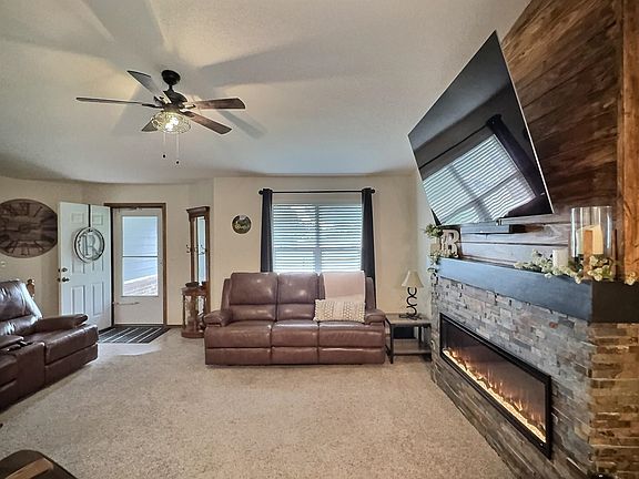 Welcome to this stunningly beautiful Klausmeyer-built home located at 324 Victoria in Newton, Kansas. This meticulously maintained property offers a perfect blend of comfort and style in the desirable Stratford Place neighborhood. The main floor is designed for effortless living, featuring a well-appointed kitchen with a convenient pantry that flows seamlessly into a combo dining room. The spacious living area is highlighted by a beautiful electric fireplace with a remote control, creating a perfect ambiance for relaxation or entertaining. The main level includes a generous primary suite, an additional bedroom and a full bath, and a convenient main floor laundry. The full basement adds a significant amount of finished living space, including one additional bedroom, bonus room, a third full bath, and a versatile family room, ideal for a home theater, game room, or extra living space. Outside, the property is equally impressive. The beautifully landscaped yard is kept lush with a sprinkler system, and the very nice patio extends the living space outdoors, offering the perfect spot for morning coffee or evening gatherings. The covered patio features a remote-ready awning for added comfort. Completing this exceptional home is a two-car attached garage. Key Features: Attached 2-Car Garage with a quiet Chamberlain belt-drive opener, new springs (2024), added weather stripping, and a smart lock on the man door. 1,058 sq ft on the main level with a main-level laundry room for easy living. 925 sq ft finished basement plus additional unfinished storage space. Total finished living space: 1,983 sq ft. Lawn irrigation system to keep your yard lush and green. $35/year HOA fee – low cost, high value! New water heater (2025) and a whole new HVAC system (2023) for peace of mind. IdeaTek fiber optic internet already installed – perfect for remote work or streaming. Electric fireplace with mantel in the living room – a stunning focal point! Freshly painted (2022) with bulky trim added around all windows and doors for a modern, finished look. Expanded driveway with additional concrete for extra parking. Extended back patio with concrete running the full length of the house and concrete steps to the back door – ideal for entertaining. With its' convenient location, you're just moments away from shopping, great restaurants, and the highway for easy travel. Plus, you're near a water park, a regular park, and a pond with a bike path. This home is a true gem and must be seen to be fully appreciated.