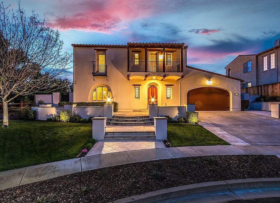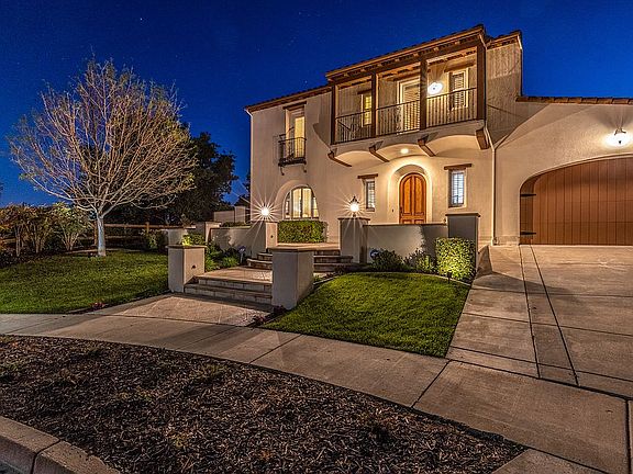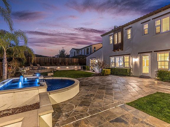 Consider this your lucky day to find this exceptional property for sale in San Ramon's coveted Dougherty Valley. One of the larger models in the Gallery at Gale Ranch, this two-level home sits on a premium, more-than-a-quarter-acre lot at the end of a cul-de-sac. Its approximately 4,687 square feet of luxurious living space seamlessly connects with fabulous outdoor venues that celebrate the quintessential California lifestyle. Entertain, play, and relax in an ultra-private backyard sanctuary with an outdoor kitchen and pavilion, fountains, and expansive patios, gather in the centralized courtyard near the gas fireplace or enjoy the hillside views from the front Italian-tiled terrace. The generous lot offers plenty of room to further customize with a pool, spa, or ADU. Marble tile floors with inlaid medallion accents, crown molding, plantation shutters, multiple Andersen French doors, and fresh interior paint flow throughout the floorplan that begins with an elegant foyer and features six sizeable bedrooms and three and a half bathrooms. Two bedrooms and one bathroom are conveniently located on the main level and offer the option to create private in-law quarters that includes access to the backyard. Formal living and dining rooms are sizeable rooms designed to accommodate large gatherings, while the chef's eat-in kitchen is well-appointed with upgraded granite counters, a decorative tumbled stone tile backsplash, an oversized island/breakfast bar, and an Elkay double sink. Stainless appliances include Bosch dual ovens, a five-burner cooktop with a venting hood, and a Samsung dishwasher. A gas fireplace anchors the adjacent and expansive family room. Create a cozy library or workstation in the spacious landing at the top of the stairs. A sumptuous primary suite on the upper level includes view windows and crown molding and an en suite bathroom with two separate vanities, a large soaking tub, an oversized shower, and dual walk-in closets. A decorative medallion inlay adorns the marble floor. Three additional bedrooms feature large closets and plush carpeting, and two bedrooms have French door access to front-facing balconies. The full bathroom on this level has two separate vanities and a tub/shower combination. The coveted Dougherty Valley is an ideal location to enjoy proximity to shopping at the Plaza at Gale Ranch, San Ramon's new City Center and weekly farmers market, the Bridges Golf Course, and multiple neighborhood parks, including Monarch Park within walking distance. Top-rated schools in the award-winning San Ramon Valley Unified School District are nearby, including about a mile to Quail Run Elementary and a half-mile to Gale Ranch Middle and Dougherty Valley High. Hop on Highways 580 or 680 easily or BART or take a short drive to the scenic Livermore Valley Wine Country. Additional features include a three-car tandem garage with custom built-in cabinets, dual HVAC, a main-level powder room with a pedestal sink, and a laundry room with a sink and cabinetry. The outdoor kitchen pavilion includes a built-in barbecue, cooktop burners, and sink.