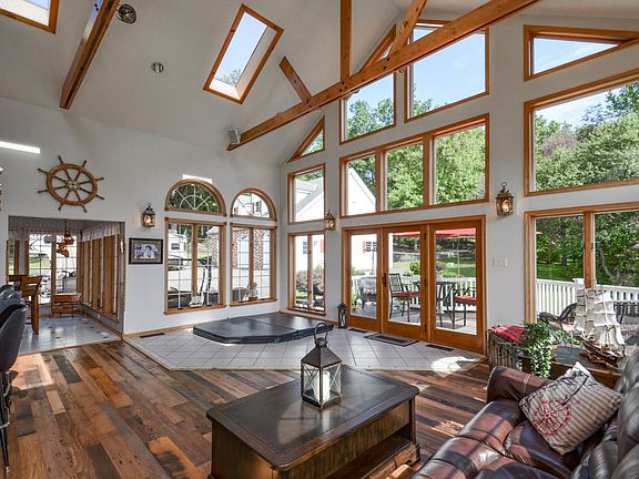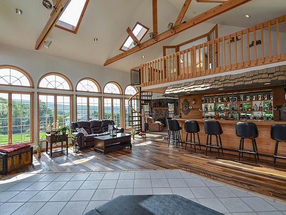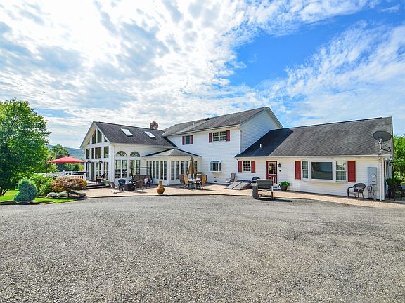 Breathtaking Custom 3-4 BR/4 bath home nestled on 3 sprawling acres among the mountains of Jim Thorpe. Custom oak kitchen is a chef's delight! Corian tops, breakfast bar, SS appliances, expansive center island w/ wine rack & sunfilled breakfast room. Host gatherings in the large family room accented w/stone fireplace. Amazing entertaining room, you & your guests will never want to leave! An abundance of windows w/amazing views, sunken hot tub, full bar w/ tap & sliders out to a large Trex deck! Spiral stairs lead up to the Master Suite complete w/WIC & French doors to a loft w/ great views. Private office to use for an in-home business. Outside, a private Oasis; Trex deck, paver patio, extensive landscaping, running brook & stream. Perfect place to unwind & enjoy nature's surround.
