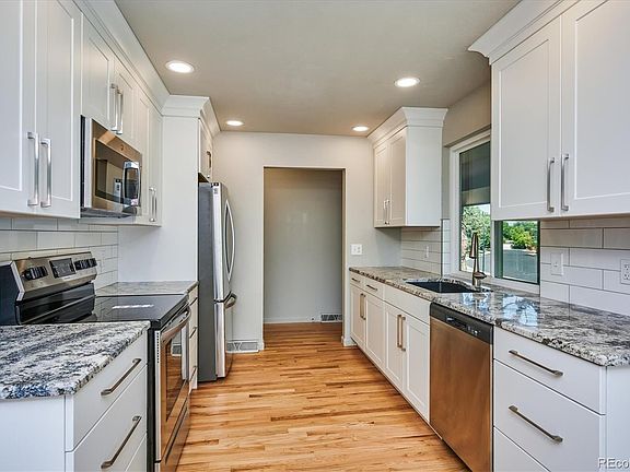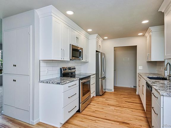 Completely remodeled walk out ranch on huge corner lot that backs to a park that offers a lake, trail and playground area, open floor plan, light and bright with, large rooms. Main floor offers large kitchen with refinished hardwood floors, brand new cabinets, crown molding and hardware, new slab granite countertops, new stainless steel appliances and undermount sink. Just off the kitchen is a large breakfast nook/dining room with refinished hardwood floors, large family room with wood burning fireplace. Large patio door in the family room provides access to the large trex deck overlooking the huge back yard and neighboring park. Down the hallway youll find the newly remodeled full bathroom that has been totally remodeled with new tile floor and bathtub tile surround, new vanity, slab granite countertops and all new fixtures that services the 2 large bedrooms. The master bedroom and master bathroom is all the way at the end of the hallway and overlooks the park. The walk out basement includes a great room with fireplace that accesses the back yard, updated 3/4 bathroom, 2 bedrooms (one non-conforming, has window but not egress), laundry room and huge unfinished storage area that could be easily finished for a work out room, study or theatre. All new interior paint, new carpet, new electrical panel and fixtures, new plumbing and fixtures, new doors and hardware throughout, brand new windows throughout, brand new roof, 2 wood burning fireplaces (one on each level). Professionally landscaped with fenced in yard, new sprinkler system and sod, retaining walls, storage shed, etc. Close to everything including easy highway access, parks, trails, Highline Canal, schools, restaurants, bars, Old Littleton, Southglenn Shopping Area plus much more!!!