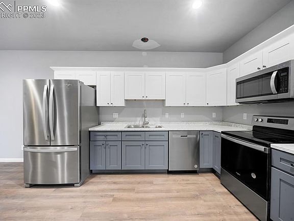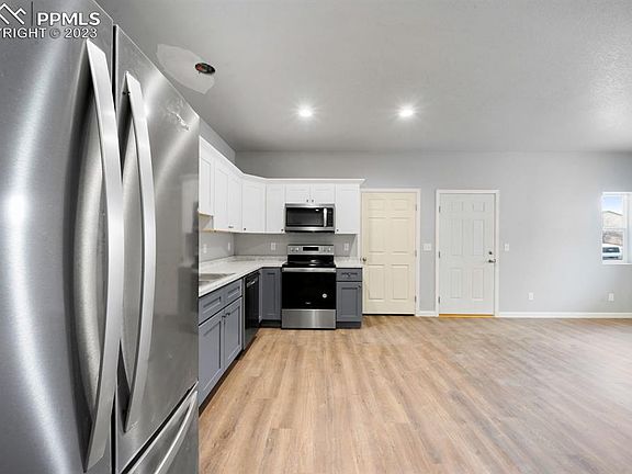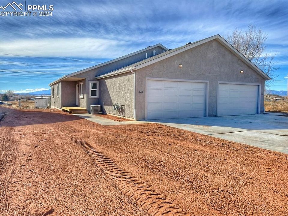 New construction with completion expected 23 Dec. 2023. Mountain views off each back deck. Tankless water heater on side one. All new, stainless steel, kitchen appliances included. Each side is 3 bed, 2 bath, 2 car garage. Pro forma Low maintenance stucco exterior. Elementary school across the street. Mountain views off back deck. Pueblo Reservoir 5 min away. Fort Carson 45 Min away. Nearly 0.25 acres easement next to property that can never be built on! If cleared would provide a huge yard for the property!