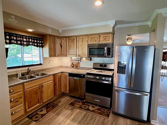 This beautifully updated 2-bedroom, 1-bath home offers an open concept floor plan, perfect for modern living. The kitchen features stainless steel appliances and solid wood cabinets, providing both style and functionality. Enjoy the convenience of a concrete driveway leading to an oversized, insulated 2-car garage with heating ideal for a workshop or additional storage. The home is equipped with a newer gas furnace and central air conditioning, ensuring year-round comfort. Relax on the covered front and back porches, perfect for enjoying the outdoors in any weather. Completely updated from the foundation up within the last 11 years, this home combines modern amenities with timeless charm.