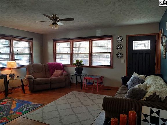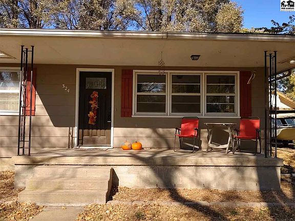 Fantastic location near Moundridge Elementary School. This ranch style home has loads of potential! It sits on a huge, corner lot with alley access. Nice, covered front porch and new front door add to the great curb appeal. Inside you'll find the original hardwood floors in the spacious living room, hallway, and 3 bedrooms. The kitchen, dining area, and laundry room have new flooring. This home has great storage space and a full, unfinished basement just waiting to be finished into additional living space. The attached one car garage is oversized and has nice storage as well. Call today!