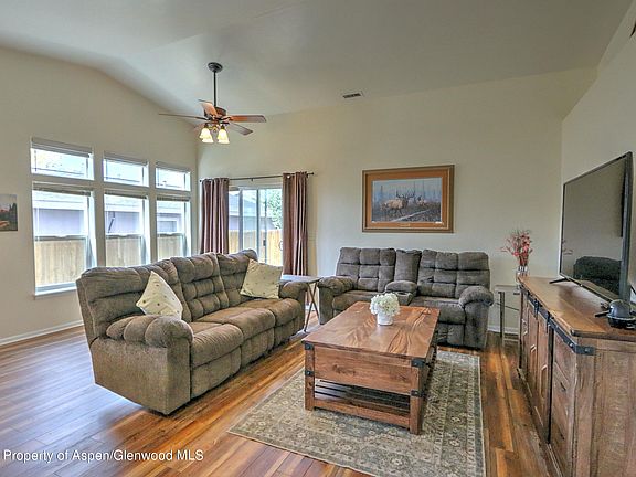Nestled in the heart of Silt, this charming 3-bedroom, 2-bathroom home offers the perfect blend of comfort and convenience, with recent updates adding to its appeal. Inside, you'll find a spacious, single-level floorplan designed for easy living, with ample storage space throughout. The open-concept living, dining, and kitchen areas create a seamless flow, perfect for entertaining. A bonus room off the kitchen provides additional versatility, ideal for use as an office, playroom, or extra guest space. The primary suite is a cozy retreat, tucked away with dual walk-in closets and a private ensuite bath. Outside, the fully fenced backyard offers privacy and security, perfect for pets or outdoor gatherings. In 2023, the home was upgraded with beautiful 20mm vinyl plank flooring and high-end carpet throughout, ensuring both style and durability. The water heater was replaced in 2019, and the entire home was repainted in 2017, giving it a fresh and modern feel. Plus, the home features a smart thermostat for added convenience. This Silt home provides a peaceful retreat while offering easy access to your Colorado lifestyle.