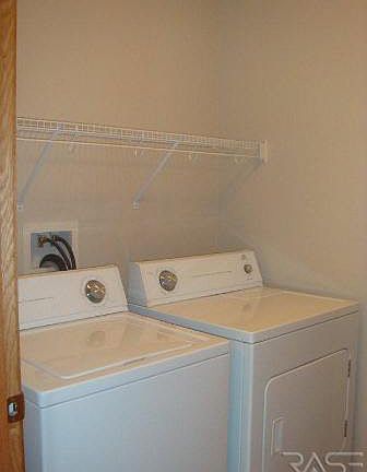 Affordable town home living on a private street in Tea offers 3 bedrooms on one level, includes ALL appliances (even the washer and dryer)!! This unit also includes an ATTACHED single garage. Two story floor plan with main floor laundry, eat in kitchen with lots of cabinets and ample living room that offers sliding doors to back yard patio. There is even a convenient half bath on the main floor! On the upper level are all 3 bedrooms and a full bath. No high association fees here! Fees are only $91.92 PER YEAR (under $8/month) to maintain the private street. Pets are welcome! Owner is licensed real estate agent.