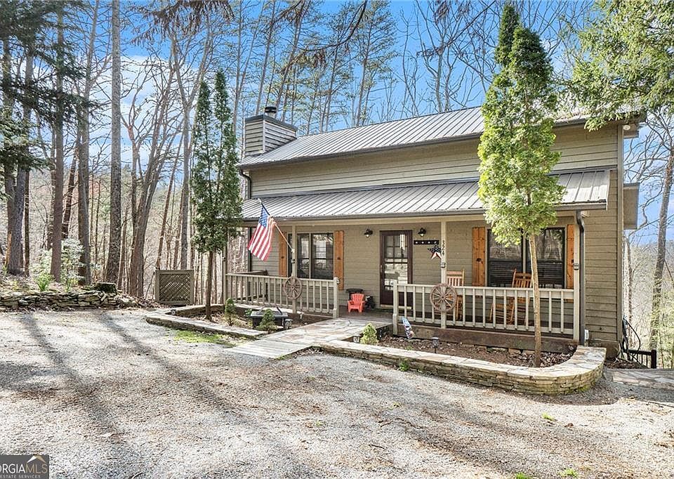 Unbeatable value awaits in Ellijay! Situated a brief drive from the gated entrance, all paved roads and a level driveway effortlessly lead to this picture perfect cabin in the coveted Walnut Mountain community. A rocking chair front porch welcomes you inside where you are greeted by a stone wood-burning fireplace stretching an impressive twenty-four feet to meet the cathedral ceiling. The open concept living area connects to a screened-in porch and grilling deck. Open the doors to let the mountain breeze flow through, expanding your living square footage while seamlessly blending indoor/outdoor living. The layout is versatile, offering sleeping options with full bathrooms across all three floors, including the FINISHED walk-out terrace level and loft. The year-round homeowners recently invested in numerous upgrades, a new metal roof and gutters, updated appliances, new window treatments and flooring, chimney maintenance and a termite bond through the year. While Walnut Mountain is only minutes to downtown Ellijay and Blue Ridge, there are plenty of amenities within the community including four fishing lakes, a waterfall, walking trails, tennis and pickleball courts, a playground, clubhouse and Olympic size swimming pool. Short-term rentals are allowed, contributing to successful income-generating properties. This well-maintained cabin guarantees that only exciting and enjoyable projects lie ahead, which will significantly add to its value even further- Simple vista pruning will unlock a mountainous year-round view!! Schedule your showing today to discover the perfect blend of mountain living and convenience, ready for your personal touch!