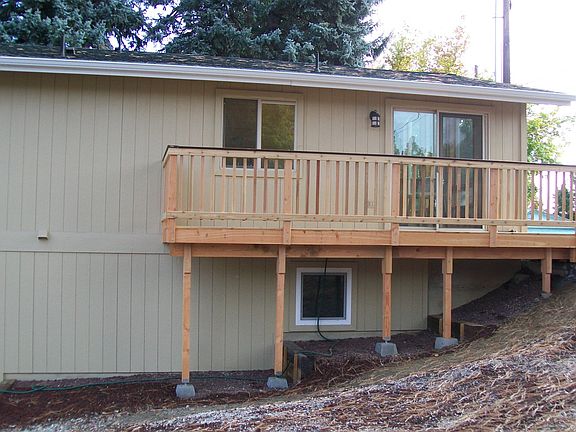 Daylight Rambler with vaulted ceilings and lots of space. New pine tongue and groove ceiling, wood burning fireplace, lots of natural light and separation of living space make this a great full time or part time home. Open kitchen and living concept on the upper level and master bedroom/bath is located on the main level. New carpet, hardwood flooring, and fresh paint. Access the home through the 2 car attached garage and enter through the basement or utilize the upper living space parking off Whitman. Nice lot size that can be added to in the back, close to town, schools.