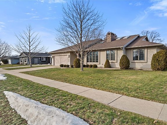 This beautiful ranch home has been meticulously maintained by the same family for 35 years. Step inside to the sunken living room with a large skylight and a woodburning fireplace with gas starter. The kitchen features plenty of cabinetry, Corian countertops, and newer stainless-steel appliances. There is plenty of space at the breakfast bar or attached dining area, which also has a door to the backyard. The main level also features three bedrooms, and two full bathrooms. The main bedroom features an ensuite with an oversized walk-in closet plus an additional closet and space for a sitting area or desk area with vaulted ceiling and skylight. The lower level is partially finished with a large rec room. Steel siding, two-car garage that is extra deep on the one stall with an access door to the backyard that is enclosed with a cedar privacy fence and storage shed. Radon mitigation system already in place.