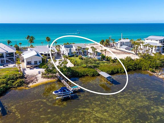 Experience true Florida coastal living in this impeccably maintained Key West–style home on Casey Key, offering the rare and coveted Gulf-to-Bay lifestyle. Thoughtfully designed with high ceilings and a bright, open feel, this residence blends relaxed island charm with modern updates throughout. Step outside to a beautifully landscaped, fenced, and gated backyard—your own private oasis. Enjoy the Pebble Tec resurfaced pool, perfect for entertaining or unwinding after a day on the water. Boaters will love the new composite dock with covered lift, providing effortless access to the bay and Gulf beyond. The dune walkover and 100 feet of private sandy beachfront is perfect for afternoons by the shore and evening sunsets. Adding exceptional flexibility, the separate guest house features one bath and two bedrooms (or one bedroom plus a den)—ideal for guests, extended family, or a home office retreat. This home has been extensively updated for peace of mind, including hurricane shutters, newer HVAC systems, water heaters, well pump, and a whole-house replumb. Every detail reflects pride of ownership and careful maintenance. Whether you’re seeking a full-time residence or a luxurious island escape, this exceptional Casey Key property delivers privacy, comfort, and the ultimate waterfront lifestyle.