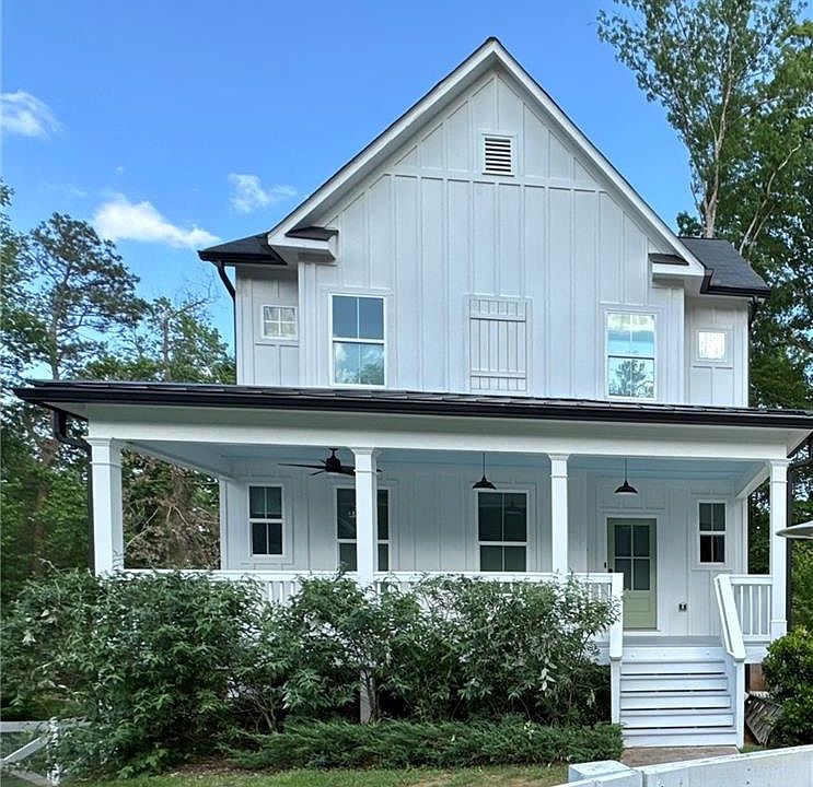 Modern Farmhouse Retreat- Step into timeless elegance with this stunning white Farmhouse, less than four years old and loaded with charm and loads of custom upgrades! Nestled on nearly half an acre (.44) of mature hardwoods, this 4-bedroom, 3.5-bath home offers the perfect blend of modern comfort and classic style. Enjoy your mornings or evenings on the upgraded front porch or relax on the screened-in side porch. The front of the property is enclosed by a classic farmhouse-style fence, enhancing curb appeal. The backyard is also fenced for privacy and a secure environment for pets and kids to play. There is a large detached Storage Unit behind the house providing ample space for tools, equipment, or hobby projects. Inside, you will find an open concept layout. The white kitchen has a custom range hood with quartz counters a stunning backsplash tiled to the ceiling with open shelving for a dramatic effect. Both the kitchen and dining room open to the living area, featuring a paneled fireplace for those cold Atlanta winters. You won't find carpet anywhere in this house, giving you a seamless flow throughout the home. The daylight basement is finished with a large bedroom and a private en-suite bathroom. The room features a beautiful custom-built-in cabinet that can be used for an office space or as a beautiful feature of a bedroom. There is a mudroom area when you enter the house from the garage. The vaulted primary suite offers a spacious retreat with a beautifully designed custom-built-in closet, double vanities with a gorgeous oversized mirror (no builder grade glued on mirrors in this house!), a glassed-in shower with tile to the ceiling, and a private water closet. There are two additional bedrooms upstairs with a shared bathroom and laundry. All windows have beautiful custom solar shades and Lutron smart switches. The home has a 2-car attached garage with a Tesla and non-Tesla charger. This house has over $45,000 in upgrades! Directions- Please use GPS.