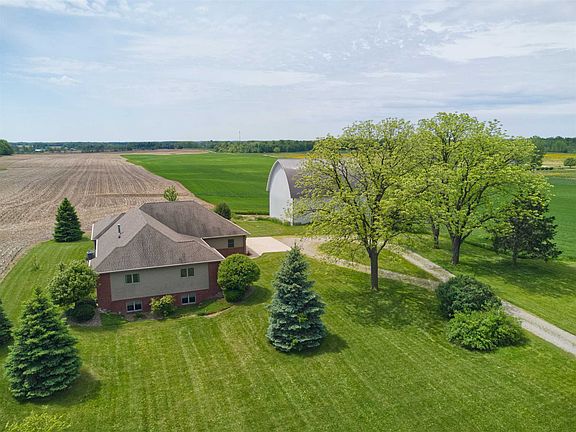 Perfect home for families, entertaining and fun! Great room just off the foyer with cathedral ceilings, beautiful brick gas log fireplace with built ins on either side. Eat in kitchen with custom Mouser cabinets, Corian counter tops and all appliances remain with the home. Island is perfect for entertaining or serving a meal to the kids on. 4 extra-large bedrooms all with large closets. Two full baths and a half bath on main floor for guests. You will find another half bath in the basement that is large enough to add a tub/shower unit if desired, all baths have heat for those cool days. Den on main level with French doors and built in desk and cabinetry for those desiring a home office. Laundry room on main level features a soaking sink, cabinets and built in folding table. Also, in the laundry room there is room for a bench or lockers and a closet to hang coats and jackets. Off the kitchen is the 3-season room that looks out over the fields and woods. Enjoy your morning coffee or a glass of wine after a long day at work. In the basement is two more bedrooms with large closets. A massive family room to enjoy multiple possibilities. Pool table, workout gym, home theater... Family room is also plumbed and wired for a kitchenette or wet bar. Two other areas in the basement for storage galore. Home has a built in Generac generator to keep the whole house running. Bank barn was restored recently with new roof and siding. They do not make them like that anymore. 3 car attached garage has multiple drains in the floor and is heated. All this on 4 beautiful acres!