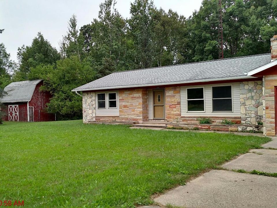 Beautiful 3 bedroom ranch home with 2 bathrooms, full basement, attached garage, 6 acres, mini barn, beautiful full kitchen awesome back yard with a fire pit for entertaining. This home is ready for a family to move in and enjoy! Not far north of Chippewa Hills high school. Paved road and no neighbors close.