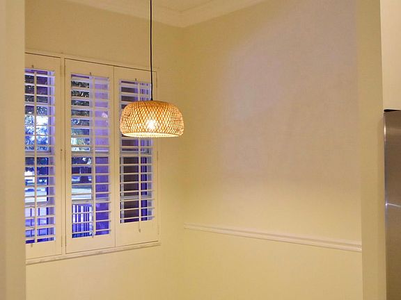 Wood floorsHurricane shuttersCrown moldingPlantation shutters in kitchen