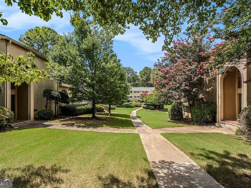 LOCATION! This well-maintained 2-bed, 2-bath condominium offers unparalleled convenience and comfort. Easy access to 285 and 85 provides quick commutes to Mercer, Emory, MARTA, and Atlanta. Convenient to Kroger, Planet Fitness, and dozens of restaurants. This second level corner unit provides less noise from neighbors. You will love a morning coffee or a glass of wine at sunset on the tiled floor, sunroom with two arched, floor-to-ceiling views. You willl welcome guests through the newly upgraded LVP hallway, to a light-filled over-sized family room that leads to a formal dining room for entertaining family and friends. The kitchen has generous white cabinet space with a gas oven/range that has a vent hood that exhausts through the ceiling. Two doorways provide convenient access to the dining area and hall bedrooms for those late-night snacks. The master bedroom has a large closet and an upgraded tiled bath with travertine tiled shower. The second bedroom is a generous size with ceiling fan and new double-door access to the closet. The bedrooms are separated by a guest bath with a shower/tub combination. The HVAC is about 5 years old, and the water heater is new. Mail is delivered to your building, no kiosk! Wonderful community with plenty of shady walking or play area for kids, and designated pet areas. Great pool and clubhouse and ample guest parking! Two Assigned Spaces for your personal vehicles. Discounted rate options and no lender fee future refinancing may be available for qualified buyers of this home. Motivated Seller.