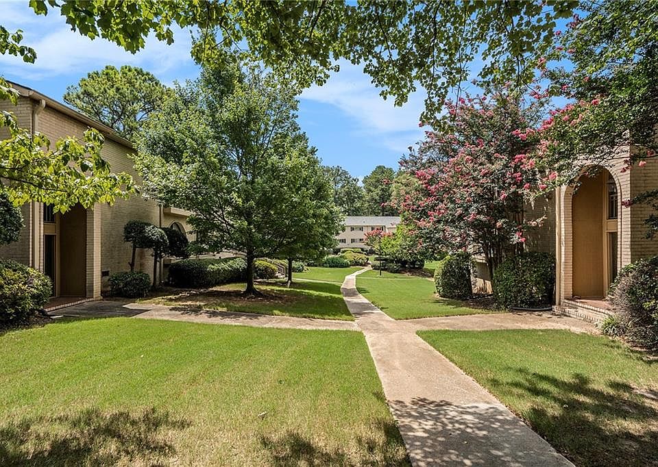 LOCATION! This well-maintained 2-bed, 2-bath condominium offers unparalleled convenience and comfort. Easy access to 285 and 85 provides quick commutes to Mercer, Emory, MARTA, and Atlanta. Convenient to Kroger, Planet Fitness, and dozens of restaurants. This second level corner unit provides less noise from neighbors. You’ll love a morning coffee or a glass of wine at sunset on the tiled floor, sunroom with two arched, floor-to-ceiling views. You’ll welcome guests through the newly upgraded LVP hallway, to a light-filled over-sized family room that leads to a formal dining room for entertaining family and friends.  The kitchen, with new LVP flooring, has generous white cabinet space with a gas oven/range that has a vent hood that exhausts through the ceiling. Two doorways provide convenient access to the dining area and hall bedrooms for those late-night snacks. The master bedroom has a large closet and an upgraded tiled bath with travertine tiled shower. The second bedroom is a generous size with ceiling fan and new double-door access to the closet. The bedrooms are separated by a guest bath with a shower/tub combination. The HVAC is about 5 years old, and the water heater is new. Mail is delivered to your building, no kiosk! Wonderful community with plenty of shady walking or play area for kids, and designated pet areas. Great pool and clubhouse and ample guest parking! Two Assigned Spaces for your personal vehicles.  Discounted rate options and no lender fee future refinancing may be available for qualified buyers of this home.