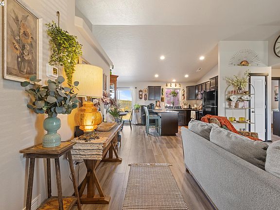 Welcome Home! This beauty is nestled in one of the most desirable neighborhoods in Umatilla, OR. The exterior is complete with full beautiful siding and modern light gray tones. The entry leads you to the spacious living room, featuring a spacious open floor plan with vaulted ceilings, perfect for entertaining. As you enter the spacious great room, it leads you to the charming kitchen and dining room. The kitchen includes an electric range with hood microwave combo, additional pantry closet, beautiful cabinetry, dishwasher, and a great size island. The fully landscaped backyard is a great space for entertainment. This beautiful community is the perfect neighborhood to call home, and conveniently located near shopping centers and schools. Call your favorite realtor Today!