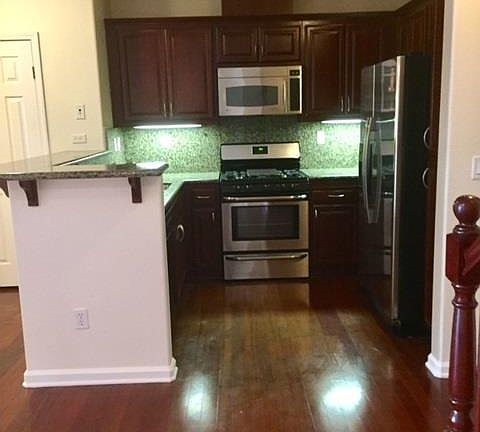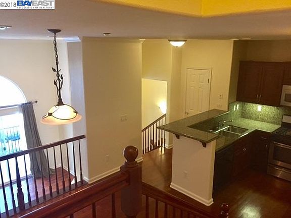 Beautiful town home style living in desirable Dublin Ranch! Gorgeous wood floors, new carpet in beds, new int paint, gourmet kitchen, attached, large 2 car garage, 2 balconies, granite counters, SS app, washer/dryer/fridge provided. Close to parks, top schools, BART, bus, shopping, easy fwy access!