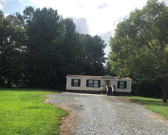 2 bed, 2 bath manufactured home on 1.44 acres in the county! This home feels very private. It is conveniently located close to I-85 but still has that country feel. This home has been freshly painted in most rooms. There is some water damage in one bedroom from a roof leak. This home is AS IS and does need work but the seller has made some improvements as they estimate the water heater to be 3/4 years old and the well at 5/6 years old. The HVAC unit has also been recently serviced. Any appliances are included with the home as well. This would make an excellent rental property as well. BRING ALL OFFERS-SELLER MOTIVATED TO SELL!
