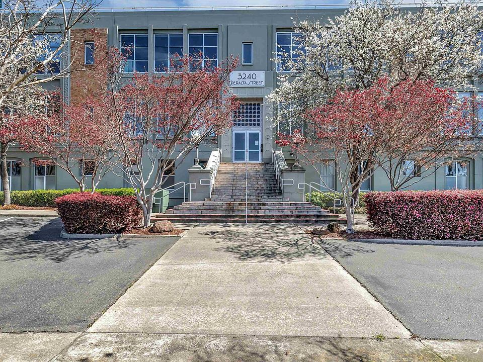 A true loft with exposed brick+concrete, on the Emeryville border, this home is as warm and welcoming as it is hip. The former Clawson Elementary School (1917), converted to "West Clawson Lofts" in 1999, is a hub of creative energy: artists, designers, IT workers, entrepreneurs & other professionals. For the past 20 years, this loft has welcomed world renowned jazz musicians for a beloved loft concert series. 1733 SQ FT/ 1 BEDROOM/ 1 BATH, concrete floors, open feel, soaring 13' ceilings and a wall of windows flooding the unit with natural light. Unique level-in location with double-wide exterior doors inviting guests & clients. Modern kitchen features Carrara Marble backsplash, Walnut cabinetry & solid countertops. Expansive bedroom has library/retreat area. Spa-like bath features tiled shower over tub. In-unit laundry room, whole-home dehumidification, many other amenities. Professionally managed building for security, maintenance & appearance. Tons of storage plus one deeded parking in gated rear of building and ample visitor parking.The building features abundant outdoor rooftop patio spaces for gardening & entertaining. Near Arizmendi, Horn BBQ, Emeryville. 4 blocks from PIXAR. Easy access to the City & entertainment/shopping. Close to BART, I-80, I-580, I-880 and CA-24.