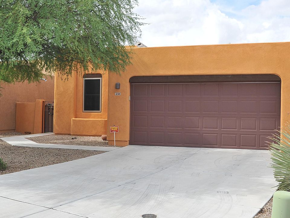 Beautiful 3 bed /2 bath Southwest style home on large premium lot that backs to wash & has private access to walking path. Appreciate the extended length 2.5 car garage along with the economic benefits of an all-electric Energy Efficient home with owned solar panels and reverse osmosis system! Home also includes Crime Guard Security Screens, high ceilings, ceramic tile throughout, & upgraded 42'' cabinets in kitchen & bathrooms. Spacious split bedroom floor plan boasts tasteful southwest charm, like decorative wrought iron courtyard gate & mesquite wood accent beams within kitchen area. . Enjoy evenings admiring the gorgeous sunsets under the covered patio & love entertaining friends while watching highly celebrated & historic Davis Monthan air-show all from the comforts of your backyard! Take pleasure in exploring the outdoors, nearby trails and parks including the Chuck Ford Lakeside Park that has jogging paths, sport fields, a playground, basketball court, covered ramadas and the lake perfect for family activities!