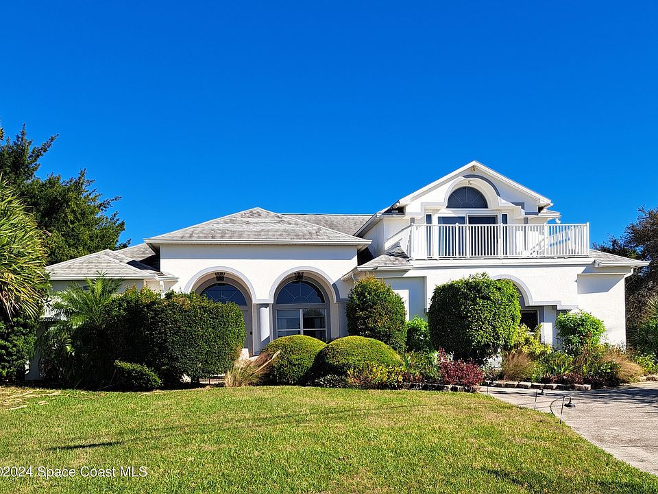Nestled on a 0.54-acre lot along the Indian River, this 5-bedroom, 4-bathroom, two-story offers privacy, and waterfront living. With breathtaking river views, a private dock, and a sparkling pool, this property is a sanctuary for those who crave a coastal lifestyle. As you step inside, you'll be greeted in natural light, vaulted ceilings, and an open-concept layout. The spacious living areas are perfect for entertaining. The gourmet kitchen is a chef's delight—with ample cabinetry and quartz countertops. The adjacent dining area and family room offer a seamless indoor-outdoor flow, leading to the expansive pool deck, outdoor living spaces, and an outdoor kitchen area. The primary suite and 3 additional bedrooms are conveniently located on the first floor, while the 2nd floor features a private guest suite with a balcony offering views of the Indian River. A private dock provides the perfect setting for fishing, or for enjoying breathtaking sunsets. The 3 car garage is 745 square foot and is under air and can be used for extra living space. Professional pictures and video coming soon.