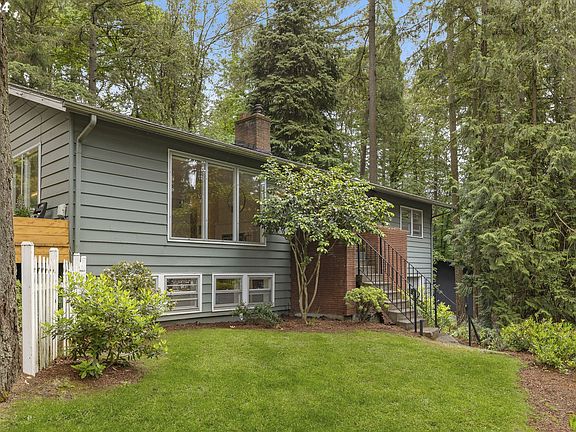 This stunning home features a spacious living room with wood floors, fireplace, and floor-to-ceiling windows. The open floor plan kitchen includes ss appliances, eat-up bar, pantry, and two sliding doors to a large backyard deck. Primary suite has office, double sinks, walk-in closet, and backyard access. Finished basement studio suite with family room, bath, and laundry perfect for guests or additional living. Large, beautifully landscaped, fenced backyard has plenty of trees for privacy. Located in a highly desired neighborhood with top-rated schools.