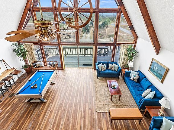 - Exterior features: A-Frame Beach House, Barbecue, Coastal Chic Decor, Fort Morgan neighborhood, Garbage not included in rent, Newly Renovated, Outdoor Games, Parking for 8 Cars, Picnic Area, Pool Table, Smart TVs in Every Room, TV Lounge, View Type: Ocean View