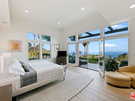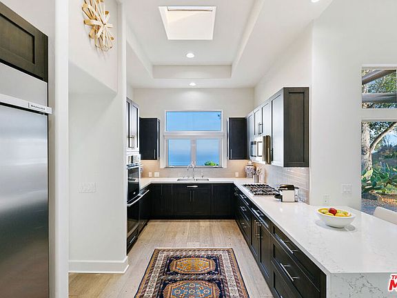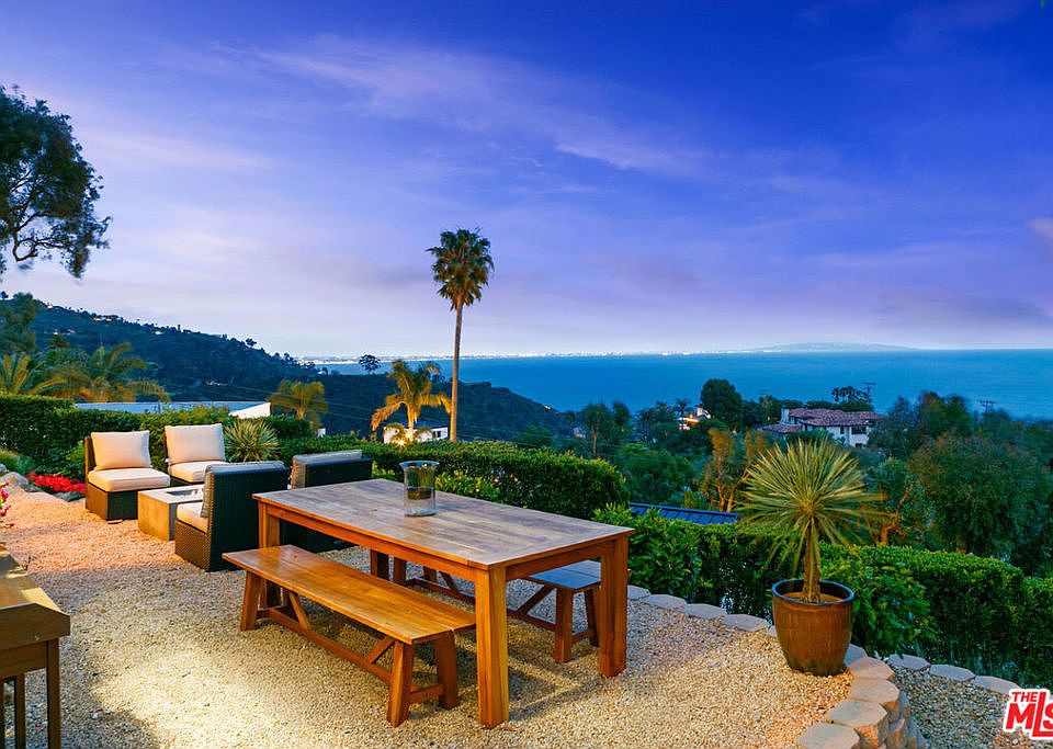 Introducing this exceptional Santa Fe-Contemporary style Malibu retreat with sweeping ocean views and coveted La Costa Beach Club rights. Set on a private 1.57-acre promontory 600 feet above the Pacific with sweeping 270 degree views, this fully gated estate offers a rare convergence of privacy, architectural integrity, and natural beauty. Every detail has been thoughtfully curated to embrace its spectacular setting, with panoramic vistas stretching from Palos Verdes and the Queen's Necklace to Catalina Island, the Santa Monica Pier, and the surrounding canyons. Framed by meticulously landscaped, drought-tolerant gardens and a manicured grassy lawn, the home has been extensively remodeled and combines contemporary living in a peaceful mountain setting. Enter through a dramatic 200-foot driveway to the beautifully designed single-level home, featuring soaring 10- to 16-foot ceilings, clerestory windows, and walls of glass that invite natural light and unfolding ocean views from nearly every room. The open-concept living spaces are anchored by a great room with a newly built slip stone fireplace and custom walnut display shelving, seamlessly flowing into the dining area. French doors open to a backyard oasis featuring a 40' Italian porcelain patio with a pergola, gravel fire pit terrace, al fresco dining area, and a sunken citrus gardenperfect for entertaining. The chef's kitchen boasts Columbia custom cabinetry, a waterfall-edge Pental quartz island with a breakfast bar, and top-of-the-line appliances including a 48" KitchenAid refrigerator, Bosch gas cooktop, Electrolux double ovens, and a Superior wine cabinet. There is an adjoining media room with a built-in 68" flatscreen and exterior access to a barbecue patio. The spacious primary suite enjoys head-on views of the Pacific and sparkling city lights, with direct patio access, a large walk-in closet, and a spa-inspired bath with a double vanity, shower, and soaking tub. There are two additional guest bedrooms with stunning mountain views, including one currently set up as an office. Additional amenities include a Sonos surround sound system, engineered French White Oak flooring, a security system with cameras, a two-car garage with epoxy flooring, and ample parking. Enjoy an exclusive deeded membership to the La Costa Beach Club and tennis courts, offering the ultimate in resort-style Malibu living. The property also includes a deeded road membership with access via a guard-gated private road, providing a direct route to PCH in just minutes. Ideally located in Eastern Malibu with convenient access to Santa Monica and the Westside, beaches, hiking trails, and more. This is a one-of-a-kind property with unparalleled privacy and refined design in an unmatched Malibu setting! There was previously a 1 bed / 1.5 bath detached guest house that was lost in the Palisades fire.