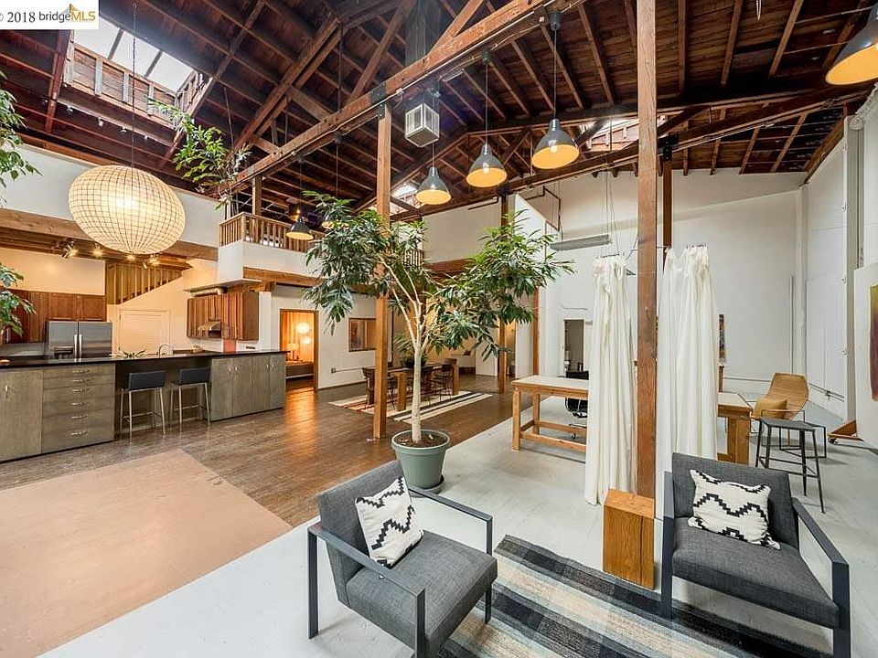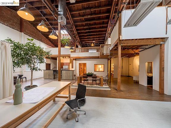 Amazing open loft space in 1914 silent movie theater - just up from Korea Town and Uptown Oakland.Big open, airy space in highly flexible live/work condo; exposed structural elements; Ionic column cornice detail preserved; wood floors at main level with prized patina of age. Light filled, with 4 skylights and tall factory-type windows; high ceilings; large updated kitchen with tons of cabinetry; long breakfast bar; stone and composite counters; stainless appliances; laundry; small secured patio area access from interior via double doors; cat climbing pillar and platform to upper level! One parking space at rear; mixed commercial/residential space; security gates enclose walkway accessed via Telegraph and also at rear. OPEN SUNDAY 7/1 2-4:30PM