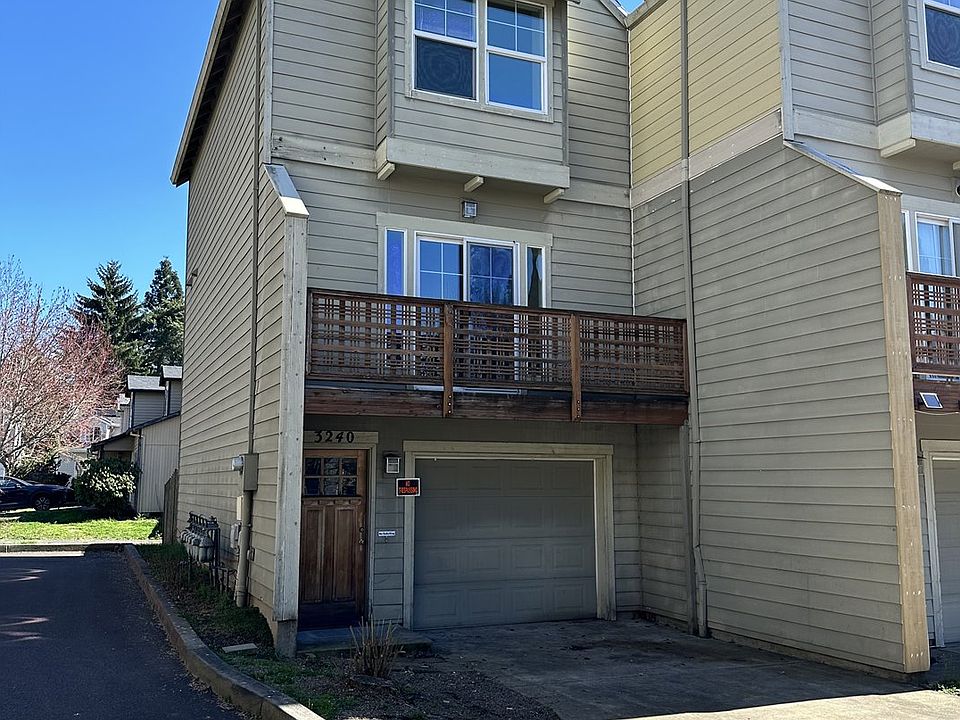 A tri-level townhome in a quiet community! Super cute floor plan with living on mid-level with half bath; bedrooms and laundry on 3rd floor with full bath; Tandem garage with extra space for storage and access to fenced back patio. Carpet removed and floor treated as needed for pet stains. It is a solid home that needs some cosmetic repair and updating to meet your needs. This home is part of an estate and will be sold As-Is which is reflected in the asking price. Appointment only and coordinated with listing agent. This would be a great opportunity for someone looking for a fixer or a great investment/rental property. Located near shopping and restaurants; close commute to Hillsboro Intel campus. No active HOA or dues