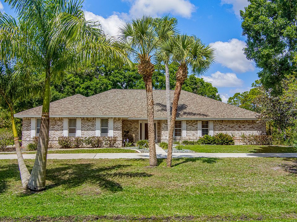 Welcome to Weber Rd in Malabar, where tranquility meets country living! Nestled on a sprawling 1.35- acre lot, this property boasts a 2085 sq ft brick home and 3000 sq ft outbuilding surrounded by an amazing pond & mature Oak trees. The open-concept is light a bright w/vaulted ceilings & crown molding, thats spacious yet elegant. Unwind in the comfort of the spacious master, featuring an en suite with a corner garden tub, walk-in shower and double vanity. Step outside to the screened- in patio, where you will enjoy the tranquil backyard and soothing sounds of the pond's water fountain. Additional features include a 24'x24' attached garage with built- in storage, laundry room with a built -in desk, 2023 Roof, Water Softener, Reverse Osmosis System and Decking around the pond, offering peace of mind and value to this Certified Pre- Inspected home. Don't miss the opportunity close to the river for great fishing yet not to far from shopping & main highways. Don't let this one slip away!