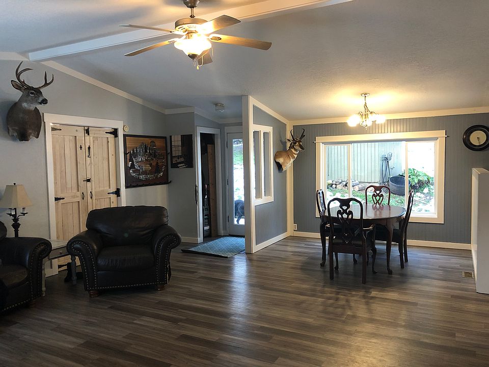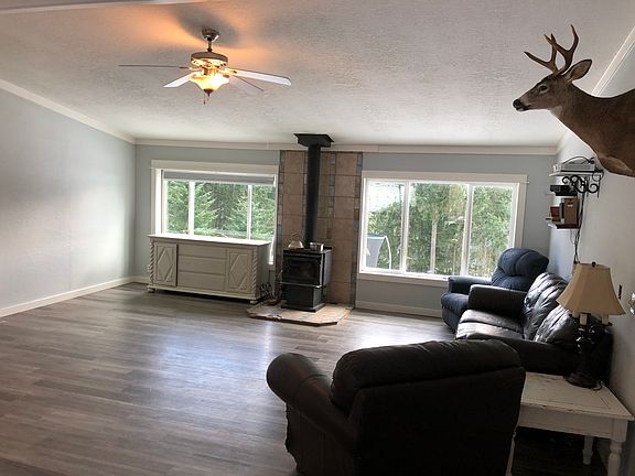 Updated home newer flooring, new cabinets, updated bathroom, newer roof, windows and siding.5 Acres close to town with a great view and lots of wildlife int he backyard.Huge 50x90 foot shop with 15' ceilings,with dry stables. Dirt road to the back of the property where there is a year around pond. Agent related to Seller